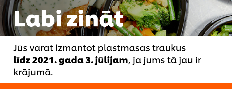 Taču tas nenozīmē, ka nevarat izlietot plastmasas taru, galda piederumus un salmiņus, kas jums joprojām ir krājumā. Ja jums ir šādi krājumi, tie jāizlieto līdz 2021. gada 3. jūlijam.