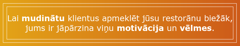 Motivācija un vajadzības, kas saistītas ar lēmumu pusdienot vai vakariņot ārpus mājas, lielākoties ir atkarīgas no vecuma. Atkarībā no jūsu mērķa grupas jums ir jāņem vērā arī dažādas vajadzības un dzīvesveids.